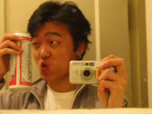 |  juzz woke.. look at ma fawked up muhlee.haha slept at 5 am.. woke up at 3.. slept again at 4. woke up at 10.. time fo beer.. ahh.. the life of a college student (dont believe in putting up any pretty pictures like studio shots and all that crap... bafroom is good enough 4me! what a way to embarass myself.. muhahha whatever i luv u all ahha)KeN VeRsUs RyU has attached this image: