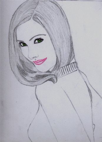 | Erica Model Drawing Erica is one of my favorites.  I think the reason why is because her eyes look exactly like my guy's eyes.....bright and green.  Her hair was long, but I 'cut' it and I'm glad I did.  Her eyes were also brown....but since green is my favorite color when it comes to eyes....I colored them green....:)   Bonita Applebum has attached this image: