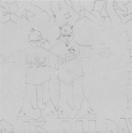 Characters for a poster for unity and peace in gang activity and such "Red Blue"