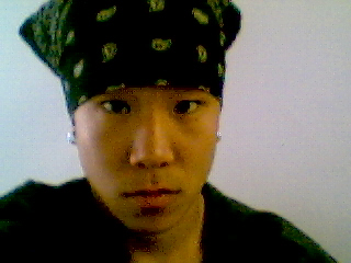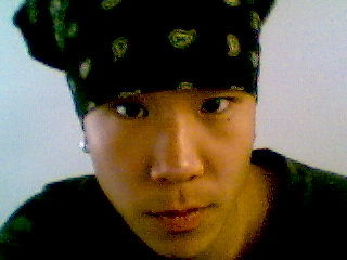 my bandana is black.. just a bad webcam. i feel so stoopid.. do i rilly look goofy? i aint goofy.. lovedontloveme.. read wut i said on ur thingie
