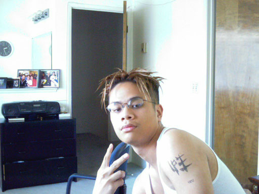 LOL.. man I love ur hair ..and is that a tatto? .. hehe I mean wha i said~ POST MORE.. that is if u have nemore!