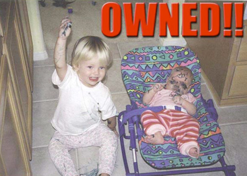 OMG that is terrible!!!!! hahahahahahahaa that poor baby!!! And omg that guys head!! its so scary!! lol