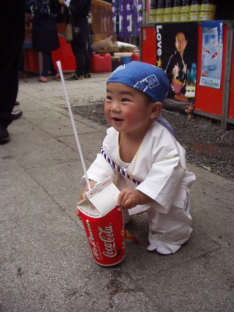 hmm maybe he was put there for a pose. i doubt a baby would just be left there and then photographed by random person. also the baby was given the coke implying that someone was with him. he could have bought it himself but i doubt it.
