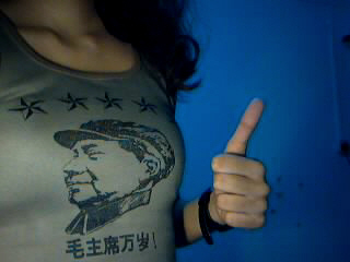 haha a tight top from brand called Future State, there's mao tse dong on it and in chinese the words 'long live mao' or something hahah!!
